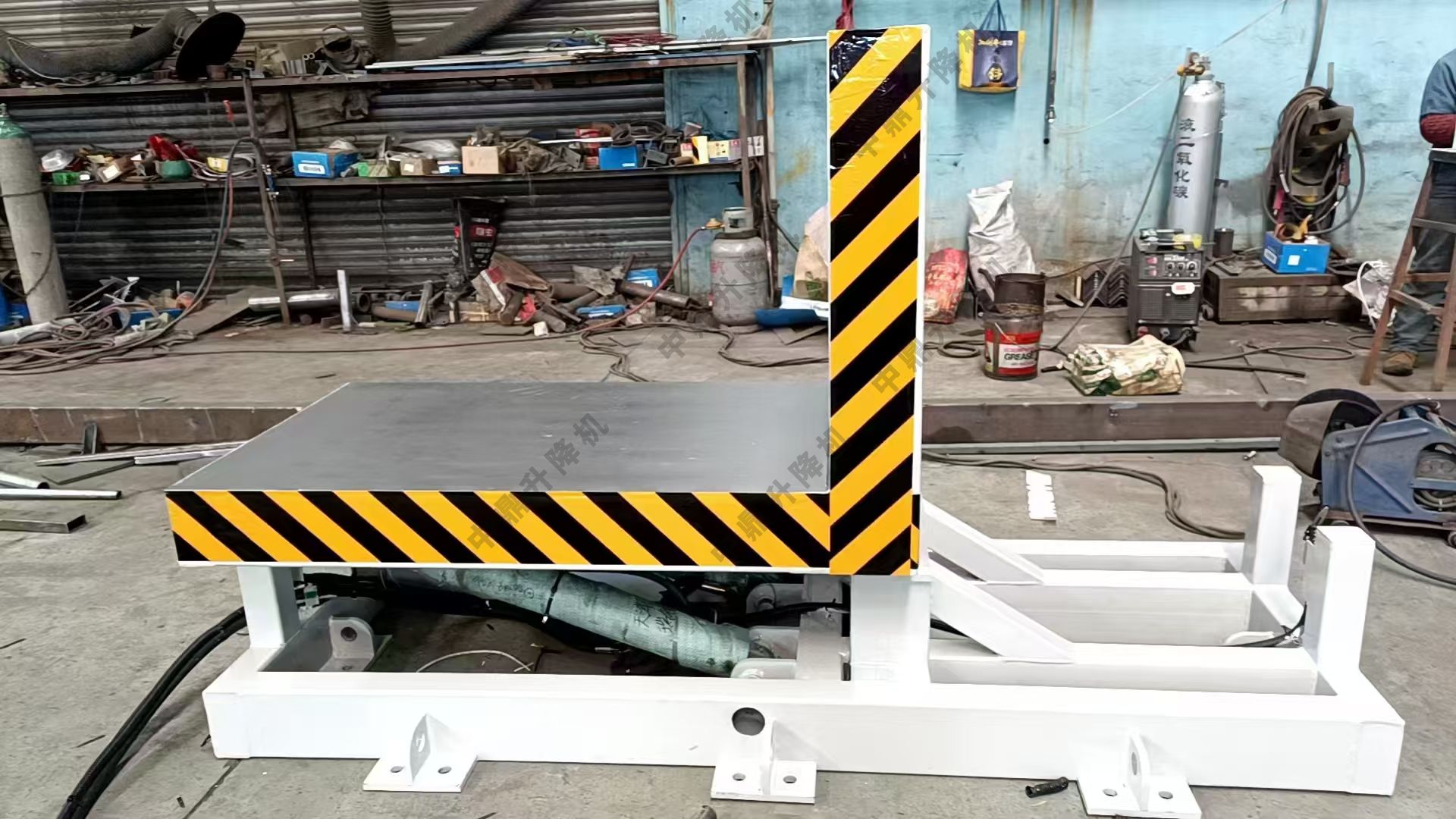 缸的伸縮帶動整個平臺實現平臺翻轉。